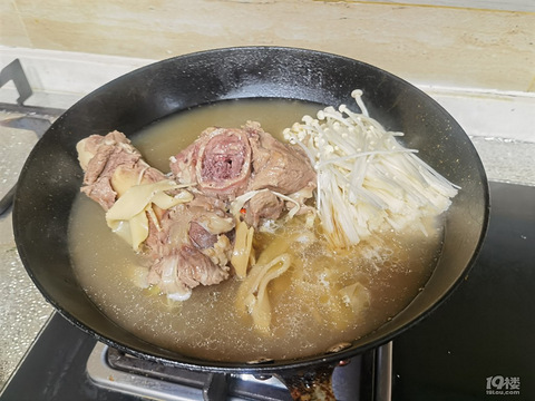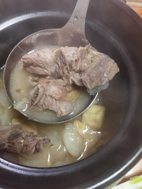 高压锅弄了点筒骨吃完一顿捞出剩下的来煮面金针菇,青菜,面条