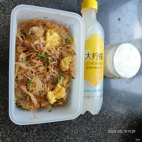 中午吃炒面,配了瓶柠檬水,放冰箱冷藏的,天热了,又给配了小瓶冰激凌,自己做的,炒面我妈说有的硬,我觉得还好啊。