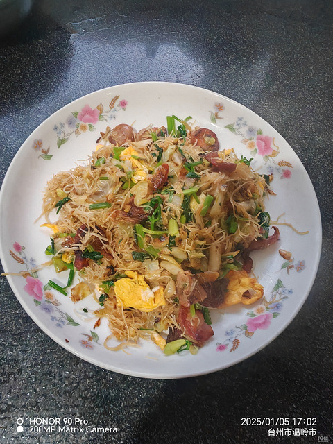 炒面不结块秘诀,米面凉水泡八九分钟,不能再泡久了,香肠鳗鱼鲞油煎一下,放包心菜炒炒,然后放泡好的米面,炒炒炒,加盐,耗油,芹菜放先去下去,炒香一圈老酒,再摊好的鸡蛋放下去拌匀,可以了