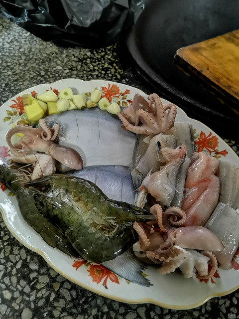 赶在禁渔期之前来个痛风套餐鲳鱼,对虾,水孱,望潮拼盘一下对虾和水孱早点放,再收汁刚好有豆腐,又红烧了一下!