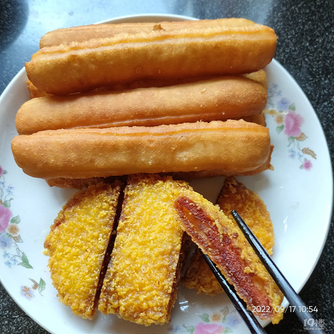 想吃油条,外面买的不敢吃,自己做又太麻烦,买了半成品油条,自己炸,好好吃哦!好久没吃了,顺便炸了两块鸡排。