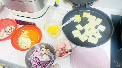 N年没吃过炒麻糍了,今天娃突然说想吃麻糍,还好冰箱里有点配菜,还有两大块麻糍,中午刚刚好。