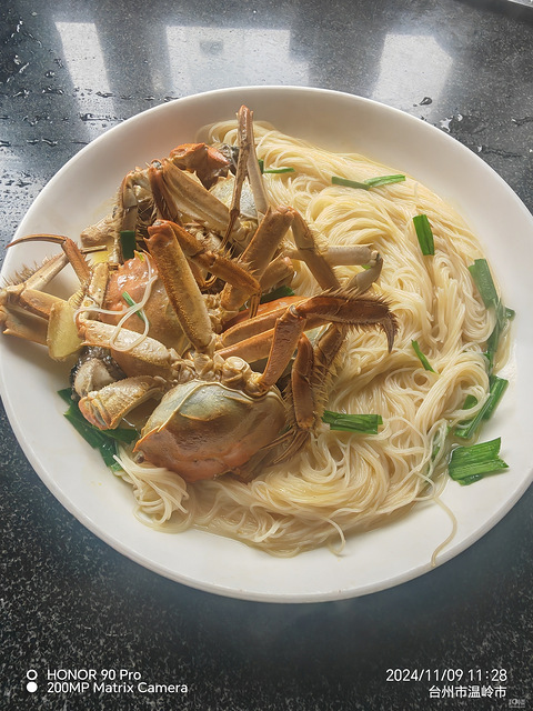 田蟹就是吃麻烦,剥着太累了,蟹很肥,热锅热油,蟹煎一下放姜片,一圈老酒,加热水,一点盐,煮差不多熟了放米面,汤有点少了,