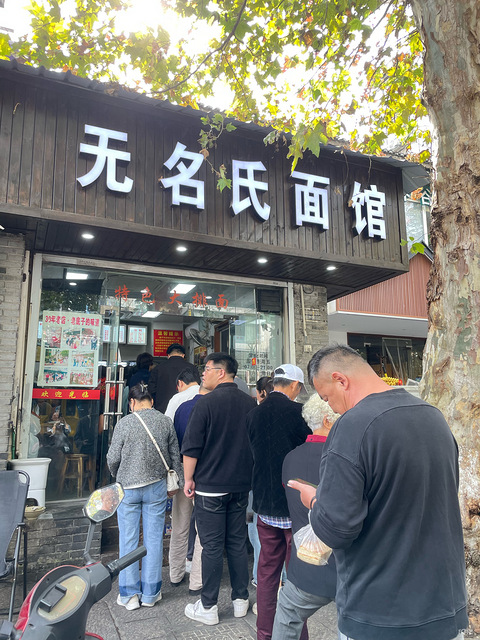 进城了,这两天在杭州作死的去尝本地推荐面馆,30年老店,每天排长队!食客络绎不绝!这不心动马上行动跟着导航七弯八拐,再排了一个多小时的队想着那么多人慕名而来应该会好吃的吧真是大no特no 首先店面非常小,只有6张桌子,每张坐4人,店内只能容纳24人有位置就坐,主打一个随缘拼桌,要买了单后,等着空位坐下去。跟同伴一起来还得被迫分桌吃 点的店里特色的,大排汤面,腰花拌面,大排拌面。等了1个多小时,那种