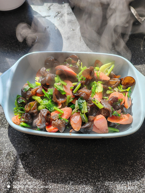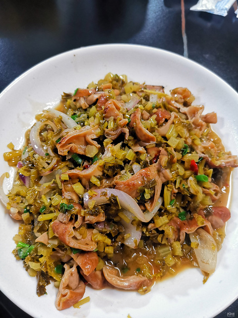 大大小小都有上午买的,晚上煮的时候嗝屁了随便炒一炒牛杂豆面汤,水放少了这般模样,再来个小青菜