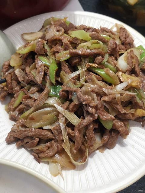 大葱炒牛肉,买的花生米和猪肠炖个豆腐汤,再炒个青菜就这样把,三四个人RIO一下