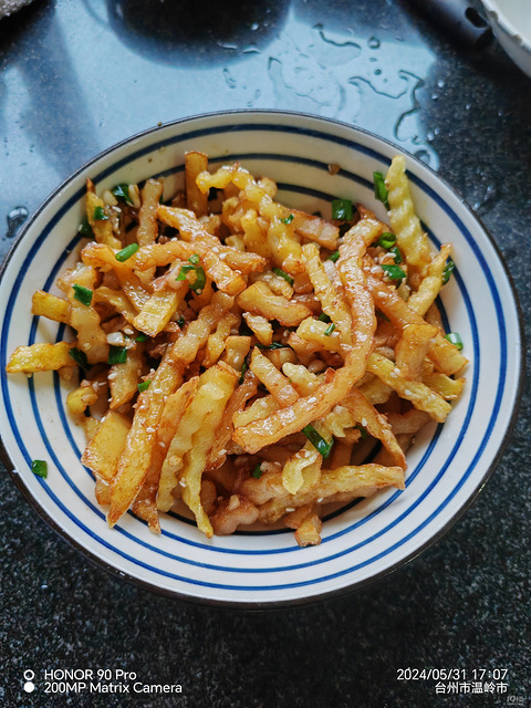 土豆大丰收,买的超市的大土豆,发芽了种下去,收获的也是大个土豆,狼牙刀切条,泡水再洗干净淀粉,油炸,拌调味料,隔壁小哥哥都说好吃