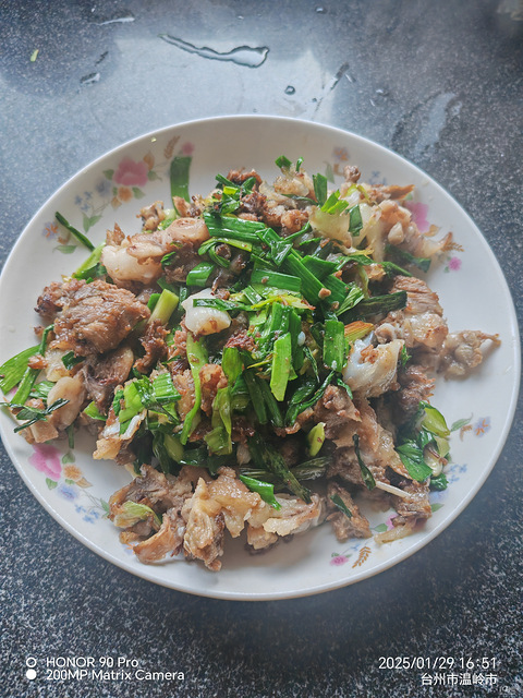 猪头肉白蘸吃了一顿,剩下的第二顿用来炒大蒜,真的很好吃哦哦!猪头肉切片,热锅热油放入猪头肉,炒香,放点盐,一圈老酒,再放大蒜根炒炒炒,然后一圈老酒,再放大蒜叶子炒,出锅就开炫了