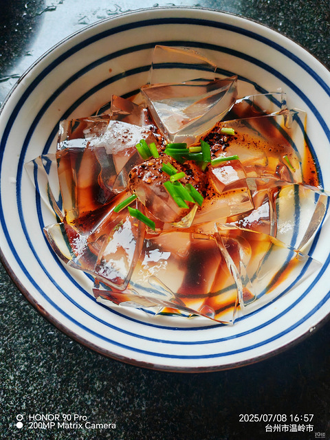 突发奇想,白凉粉冻做咸口的,之前都是加糖加奶,试试不一样的版本,白凉粉切块,加盐,生抽,醋,辣椒油,葱花拌匀,吃着还行