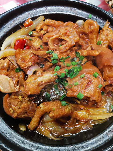 临海破村,这个经典套餐真的百吃不腻!有鱼有肉,还有年糕,水果杯,三个人吃也够最爱黄油?焗鱼头,很香很嫩,胶质感猪蹄凤爪也是每次必吃,软糯的凤爪,Q弹的猪蹄