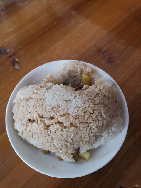 天台最有名的炊饭,不在水厂路但还是这个名字,我们点了加饭、肉、鸡蛋、油条,肉是卤肉,林林总总一大堆,12块钱,对于本地人来说当早饭不便宜,游客应该觉得还行。 端上来好大一个饭团,扎实得很,加饭就是为了两个人分着吃,一个人不加糯米饭当早餐完全足够!特别惊艳吧,倒也没有,就是很传统、很实在的味道。好在米粒蒸得透,饱满度一般,不过卤肉片、鸡蛋、肉汤这些食材都挺新鲜的,尤其是那根油条,还是脆的。 要是他们
