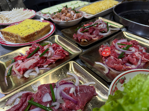 好久没吃放纵餐啦!走起走起!随意在小某书上选了一家推荐的烤肉店,喜喜烤肉,去打卡!位置就在商业街这边,还蛮好找的。一行三个人,本来说点个美团套餐,四人餐一百六左右,看着量多也划算,但看人评论说四个人才吃了一百多,想着点套餐肯定吃不完,所以选择单点了。好了么,三个人库库一顿点,点了有两斤快三斤肉了吧,吃的满嘴流油,味道是挺不错的,最后一结账,吃了三百多[/11捂脸]人笑到,完全是低估了自己的胃。不过