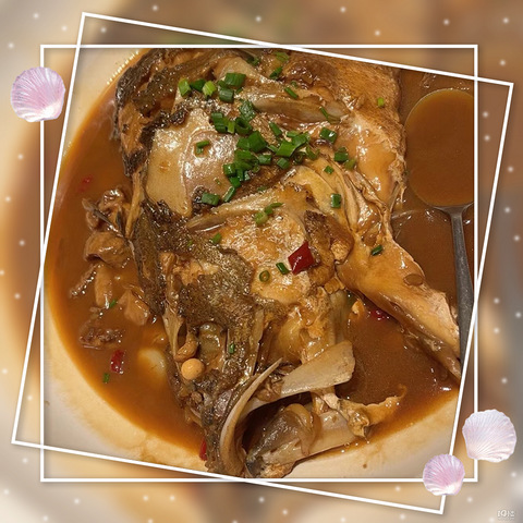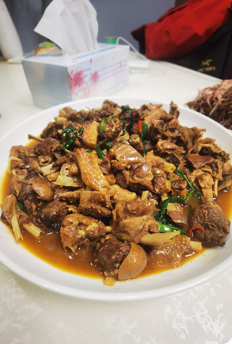 红烧鱼头,味道很不错,汤汁拌饭都很好吃,最喜欢肚皮边边的肉很嫩。虾干炒盘菜也很好吃。豆面汤很适合冬天吃。