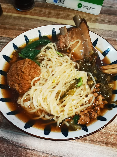 本来想去老街排档店,怎奈没位置了,只好去旁边阿敏手打面吃面条,肉圆,小排,质量在线。都是我的口味值得来一碗。