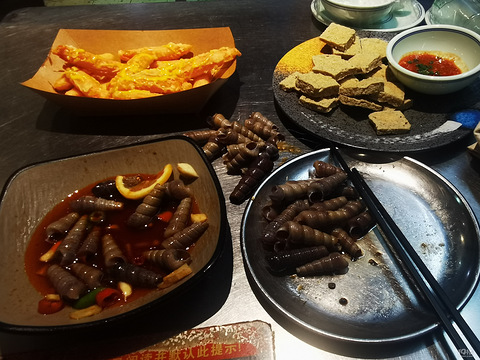因为点了肉炊圆必点,只能选五个。还点了钉螺,因为搞成红油香醋柠檬片的形式。个人更喜欢直接高压锅出来原味嘬。还点了雪蟹腿肉油炸沾芝士。现场油炸出锅的臭豆腐香臭沾辣酱,脆,适口简直停不下来。