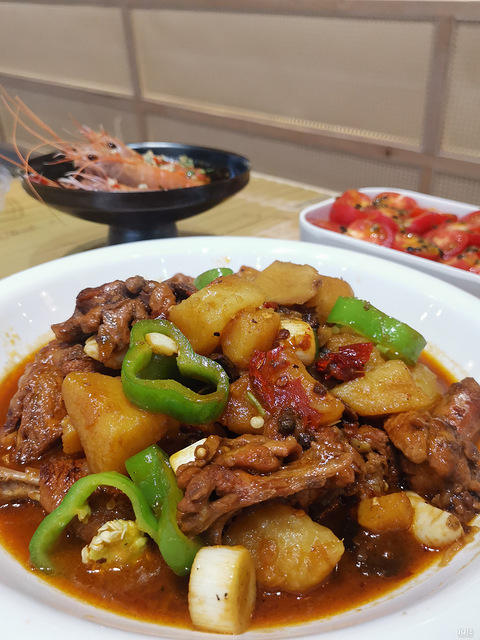 大盘鸡小份58,两个人够吃土豆,鸡块很入味!鳌虾很不错酸奶9元一个很浓郁人均100不错管饱