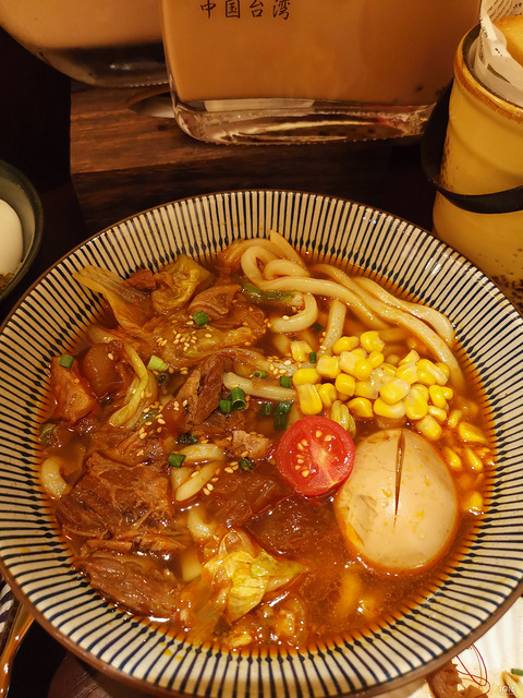 番茄牛腩乌冬面还不错,味满满,牛腩牛筋软烂乌冬面顺滑假期需要排队一会会还吃了三杯鸡,奶茶,牛百叶,不错!
