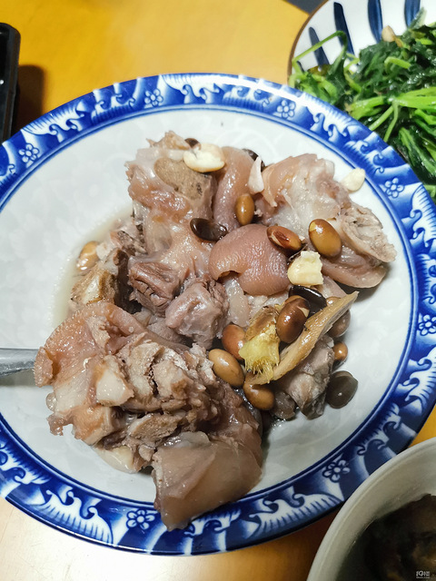 同样的黑豆今天煮得就像红豆之前乌漆麻黑的再蒸个鱼,炒个苋菜切了点卤牛肉搞定晚餐