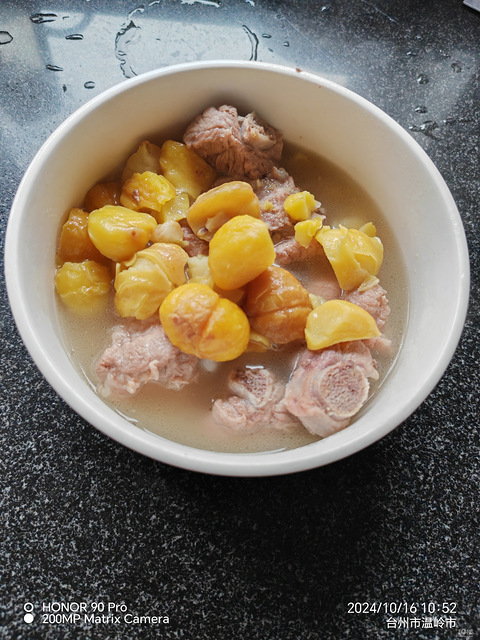 小排烧板栗,应该小排烧差不多了放板栗,今天脑子糊涂了一股脑丢高压锅炖,然后板栗碎了,没个整个的,还好味道不错,自己吃就无所谓好不好看了哈!