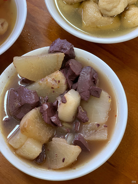 12点半去的,一桌接一桌苋菜呼啦太天台一般水平有的麦饼有点油腻,可能来不及做煎得不够!牛血羹阿姨基本给的都是白萝卜味道还行,其他一般了