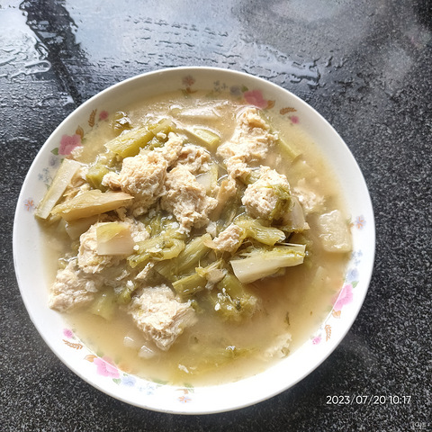 千里飘香,百吃不厌,之前手烫伤了,买了豆腐,就冷冻起来,今天拿出来烧千里飘香,没想到还蛮好吃的。