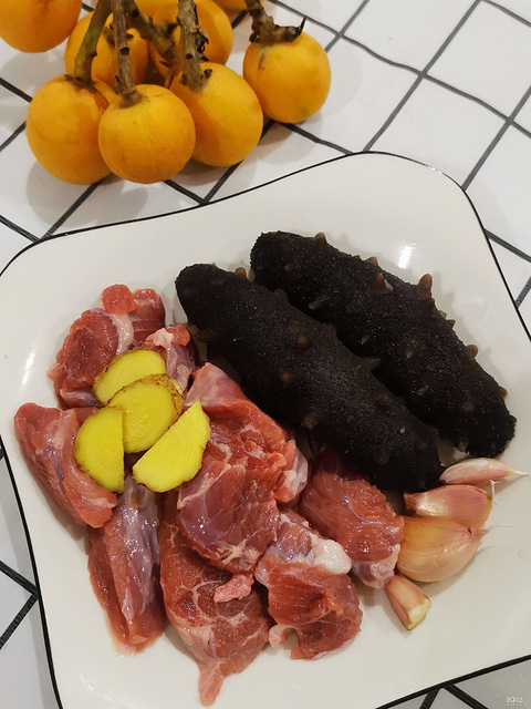清炖牛肉海参汤!牛肉焯水后,高压锅压半小时;然后放入砂锅,加入姜、蒜、酒炖一小时;最后十分钟,放鲜食海参和枸杞;很不错!!!!