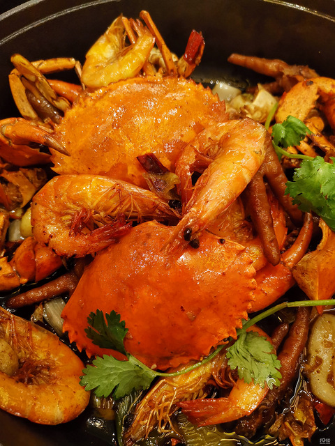 新店开业,代金券58抵用100还是蛮划算的,一个蟹锅套餐一个牛蛙,四个人吃到撑吃完螃蟹,煮菜和宽面都不错!