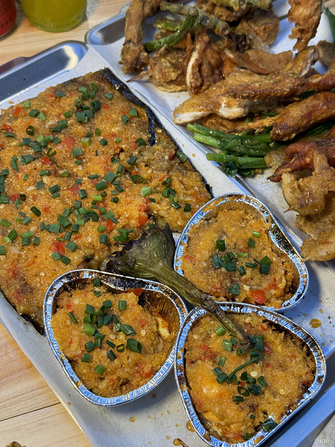 现烤的,味道不错价格也还好,如图末太爱这个鱿鱼和茄子拉来点啤酒周末该如此!
