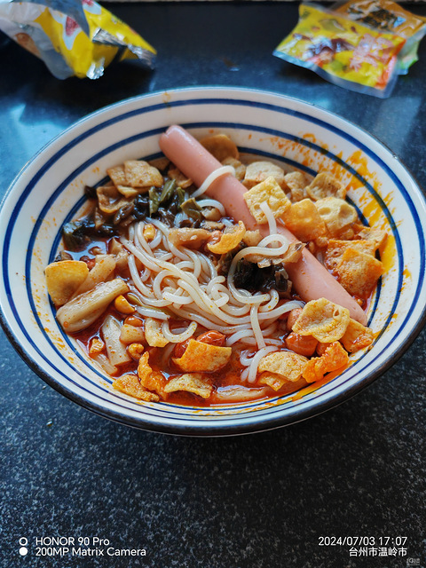 好久没吃了,居然想吃了,来,煮一包,粉冷水下锅,水开再煮12分钟,然后捞出来,放入各种料汁配料,拌匀开炫