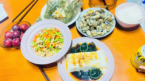 夏天就适应清蒸,简单又方便,也不油腻。多宝鱼,花蛤水开上锅蒸10分钟就可以了。我跟娃从吃葱,永远也想不到要买葱来点缀。凉拌皮蛋豆腐最爽口,在我家也是最爱欢迎。