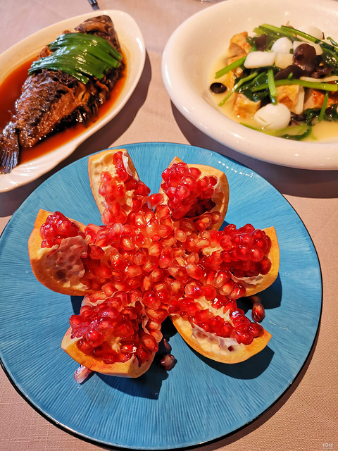 杨帆荟的家常套餐有肉有鱼,还有水果梅园,时蔬和麦饼,两个大人一个小孩够吃了!