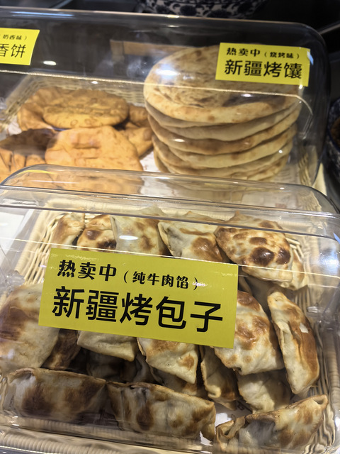 新疆烤包子9.9元一个,吃吃挺香,这家店就是环境挺干净,吃羊肉,吃羊肉串,吃面都感觉不错。 小白花也好看