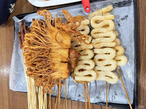 难得吃个夜宵,因为想吃一串炸年糕了,然后就来了个夜宵路桥的禧炸,卖芝桥路上的,这家好像都是有店裹粉炸的,炸鸡翅年糕我觉得还挺好吃的,但是这次去年糕没有那么好吃的感觉了虾和一个方方的牛肉粒串我觉得很好吃,第一次那牛肉粒吃,又黄油香味的感觉,可能是中间有点肥肉吧,推荐牛肉粒,忘记拍了