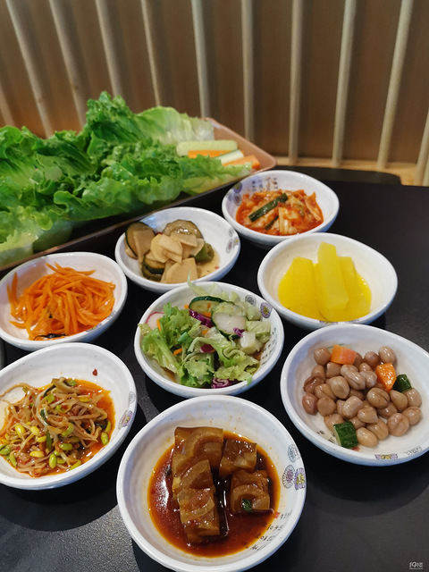 烤鳗鱼,都不错,只有他们家有团购而且各种小菜,南瓜粥无限续泡菜+在生菜包肉,很不错!牛肋条也不错全程帮烤,服务赞!