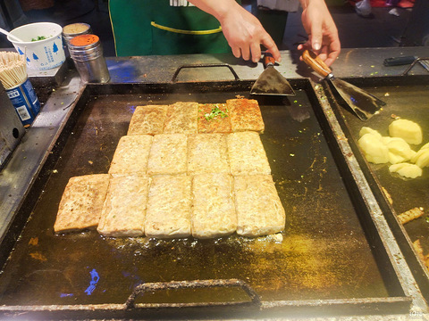 要问我在美食街遇上什么东西必买,铁板豆腐必须在名单上刚出锅的铁板豆腐,金黄焦脆,边缘微微翘起,咬下去第一口,外脆里嫩,敲好吃。水煎包蒸饺在热油滋滋作响下更加引人流口水,咬下去鲜肉味溢满整张嘴,非常满足。