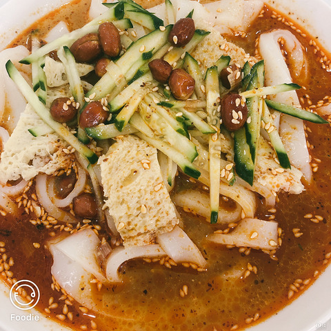 特色酿皮3.99元,实际和凉皮差不多的意思,有黄瓜丝,花生米,挺好吃的,一盘被我吃完了。杏皮茶1元一袋,中饭5元解决了,天太热了
