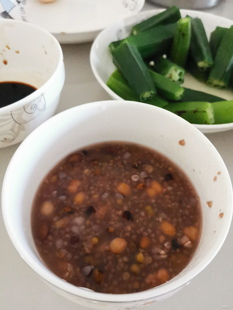 定时的杂粮粥每天基本一个的水煮蛋再来点秋葵配粥再来个主食