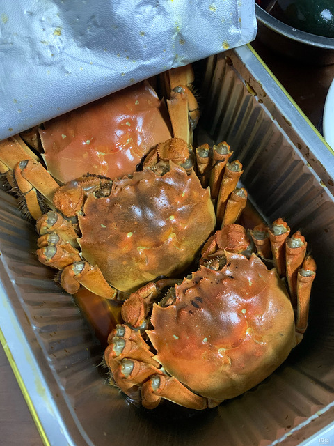 但配了醉蟹朋友江苏寄的品质不错,四只一盒八只至少三四百吧黄很满,稍微腿部有点干巴不够下粥,又弄了个皮蛋