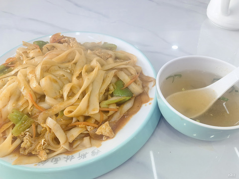 鸡蛋炒刀削面16元,感觉还不如牛肉炒刀削面也才16元,好大一碗面,面条很有嚼劲,加一碗汤随便吃吃吧