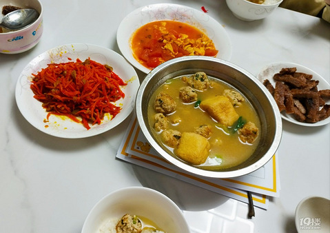 小龙虾,虾肉好吃,剥剥手上都是汁。家常豆腐,好吃,美味。番茄蛋汤,拌饭吃,喝一碗