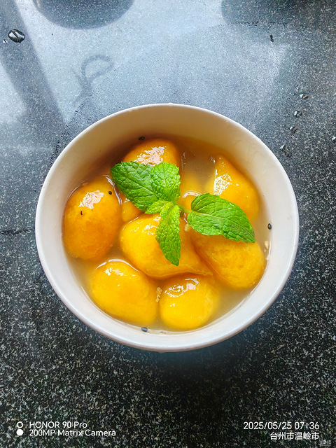 早餐,想起来冰柜里还有包山粉圆,煮了吃吧!水开放山粉圆,搅拌一下,我放了24个,早餐差不多够了,等再次煮开搅拌一下,加点水,再中小火煮五分钟,就可以了