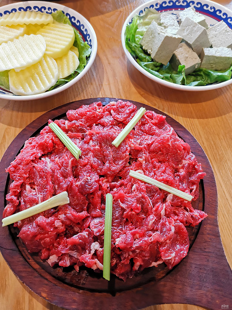 味道不错,牛肉很新鲜,也很嫩,胃口一般的话,两个人吃半斤或者三四人一斤,酸汤很入味,放土豆和牛肉都很赞,不蘸酱都好吃,第一次吃苏子酱,还是不错的,亚麻籽的口感!还有自助蔬菜和自助水果,99套餐的话,包含半斤牛肉,两个女生完全够吃!