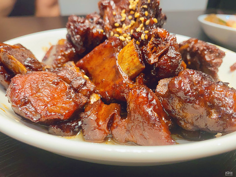 好久没吃红烧肉了,家里的“小馋猫”突然和我说想吃红烧肉了,说我烧的最好吃了。来安排[ej=1F60A] 我看好多人都喜欢把猪肉焯水。我比较另类喜欢控好水的猪肋骨直接下油锅煎“少油 ”煎至金黄 炒糖色 (这一步忘拍照) 放料酒 老抽 生抽 蚝油 豆瓣酱 盐 八角桂皮 生姜倒入滚烫的开水“不能放冷水,肉会变柴,要不然真的要吃柴了[ej=1F602]” 小火炖一个半小时放一小捆葱 大火收汁最后出锅