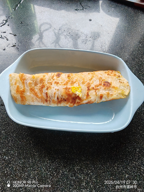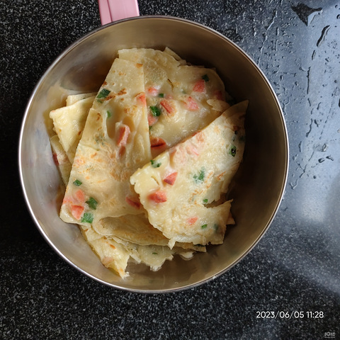 本来说拔颗生菜的,又说不用了,那就简单点,手抓饼煎一下,打个鸡蛋,加根火腿肠,挤点番茄酱,包上就吃了。