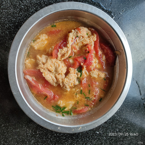 孩子说好久没喝番茄蛋花汤了晚上没时间烧饭,那就早上吃吧。