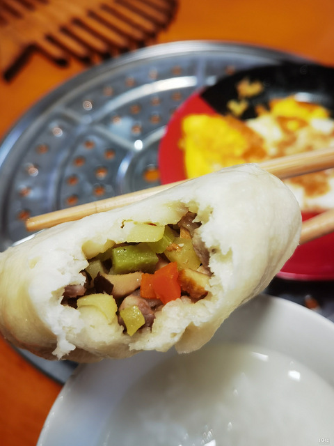 天台特有的素包子叫做馅包就是扁食的馅做进去来个荷包蛋配半碗稀饭吃饱了!!!