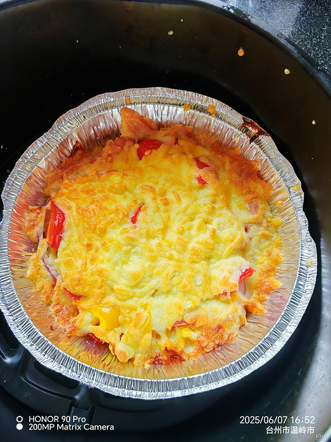 懒得做饼皮,就用手抓饼吧!手抓饼卷边,刷番茄酱,然后空气炸锅160度五分钟,拿出来放马苏里拉芝士,然后火腿肠,青红黄椒,水果玉米粒,洋葱,再厚厚一层马苏里拉芝士,空气炸锅170度十分钟,哇,好好吃,又做了一个。