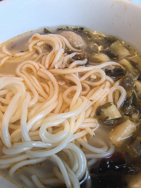 早上吃个粉,味道绝了,配上豆腐干肉丝,还有笋尖咸菜,很好吃,小猪包来一个。 看个湖