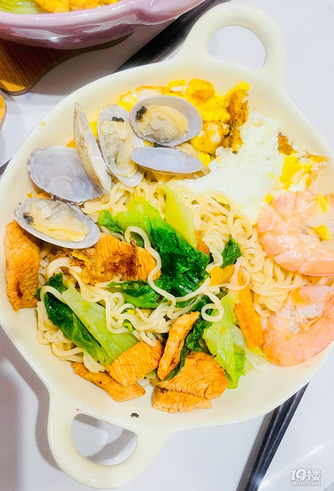 早餐三鲜泡面,娃从小就非常喜欢面食,泡面,麦面,米面,拌面,还是汤面都喜欢。每一次吃面都是大口大口的,最好还是配菜少一点的[/11捂脸]。