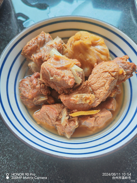 遇到好排骨必须来两斤噻,洗洗,热锅热油放排骨,放生姜,排骨煎两面金黄,一圈老酒,耗油,酱油,各种翻炒,然后盛入高压锅,放一个大蒜,加热水,加盐,上汽大火十分钟转小火15分钟,香喷喷的嘞
